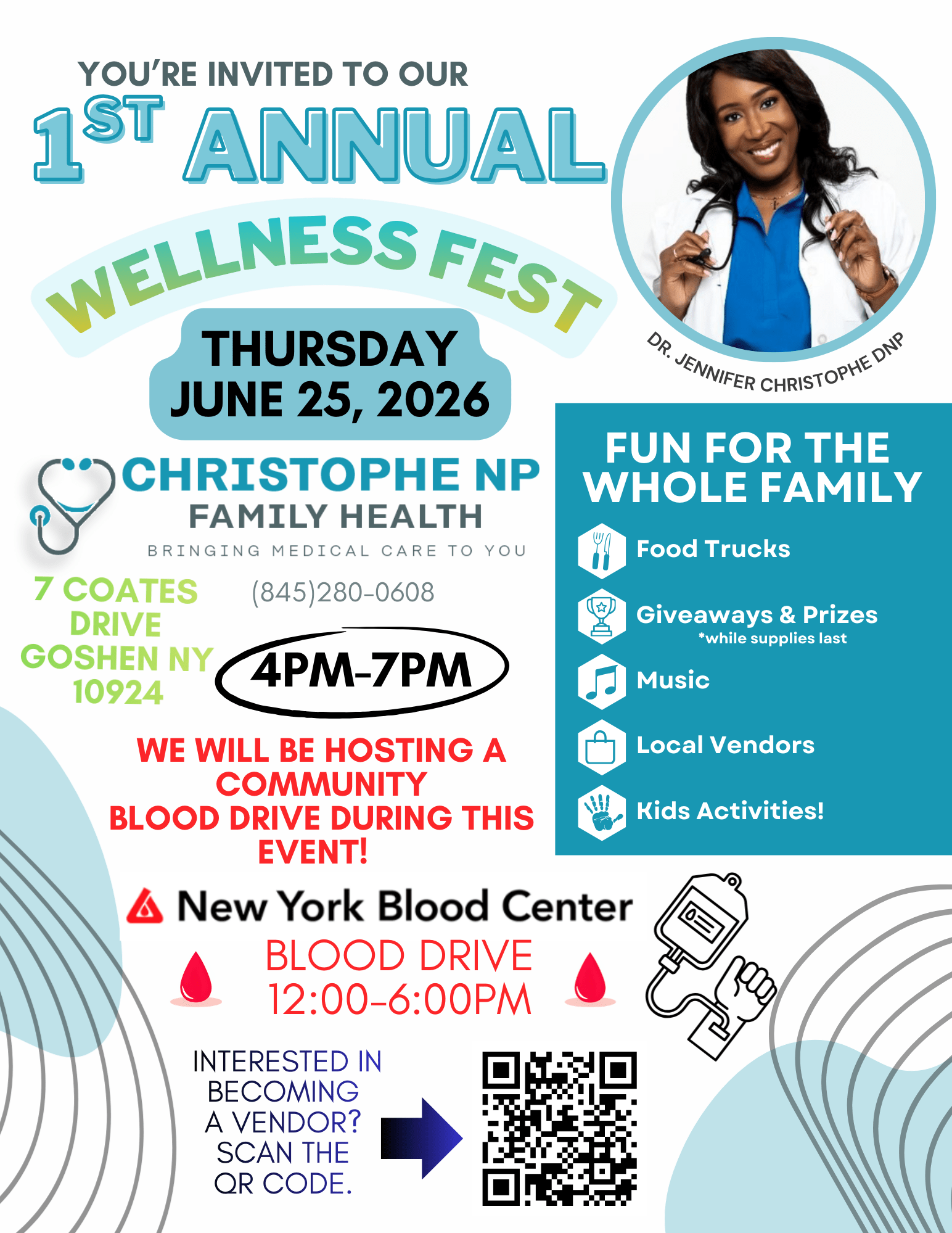 Join us for a lively day of food trucks, giveaways, prizes, wellness activities, and supporting a life-saving blood drive. Your participation helps make this event meaningful and festive for the whole community! If you're interested in becoming a vendor, please reserve your spot today.